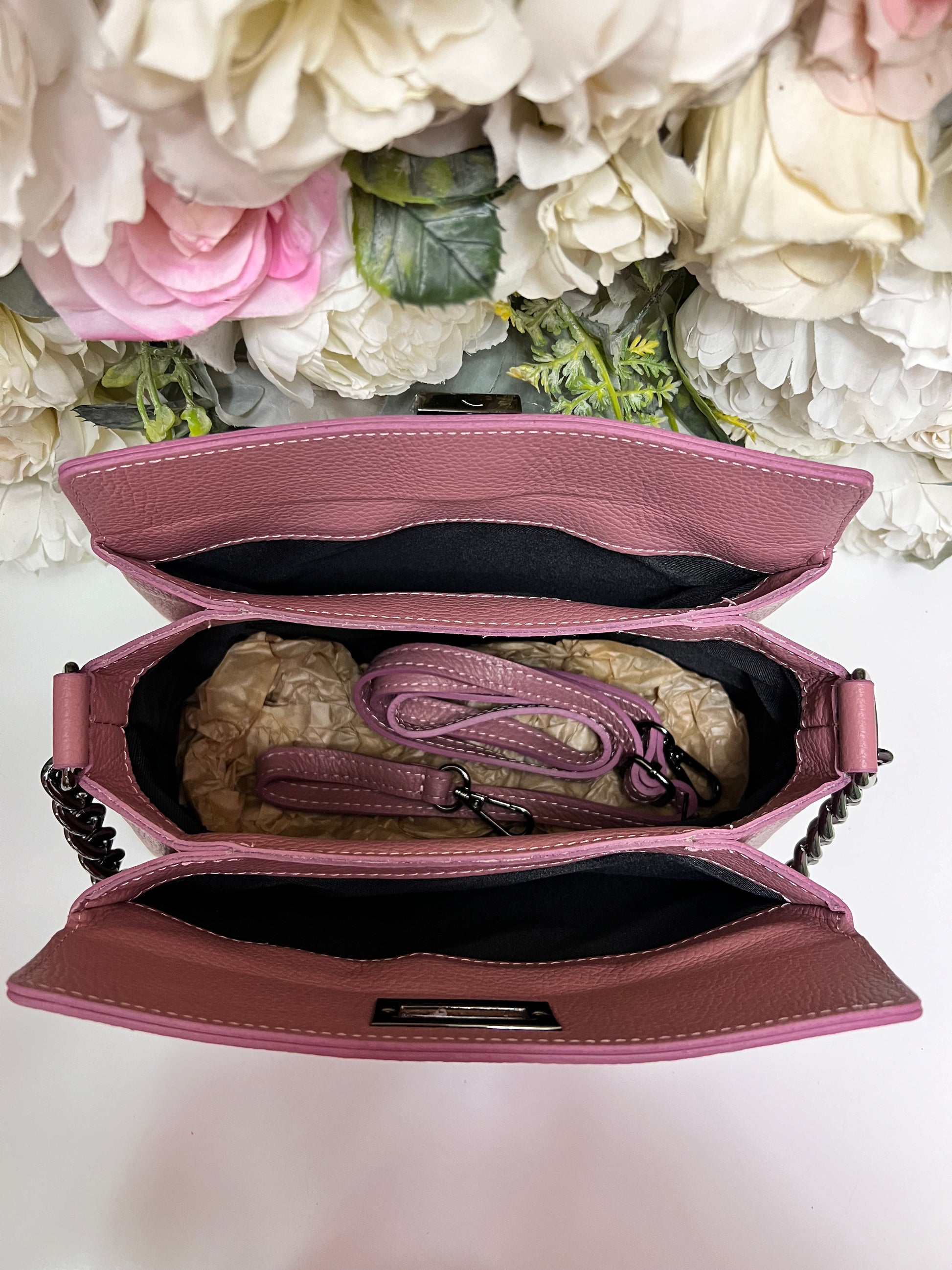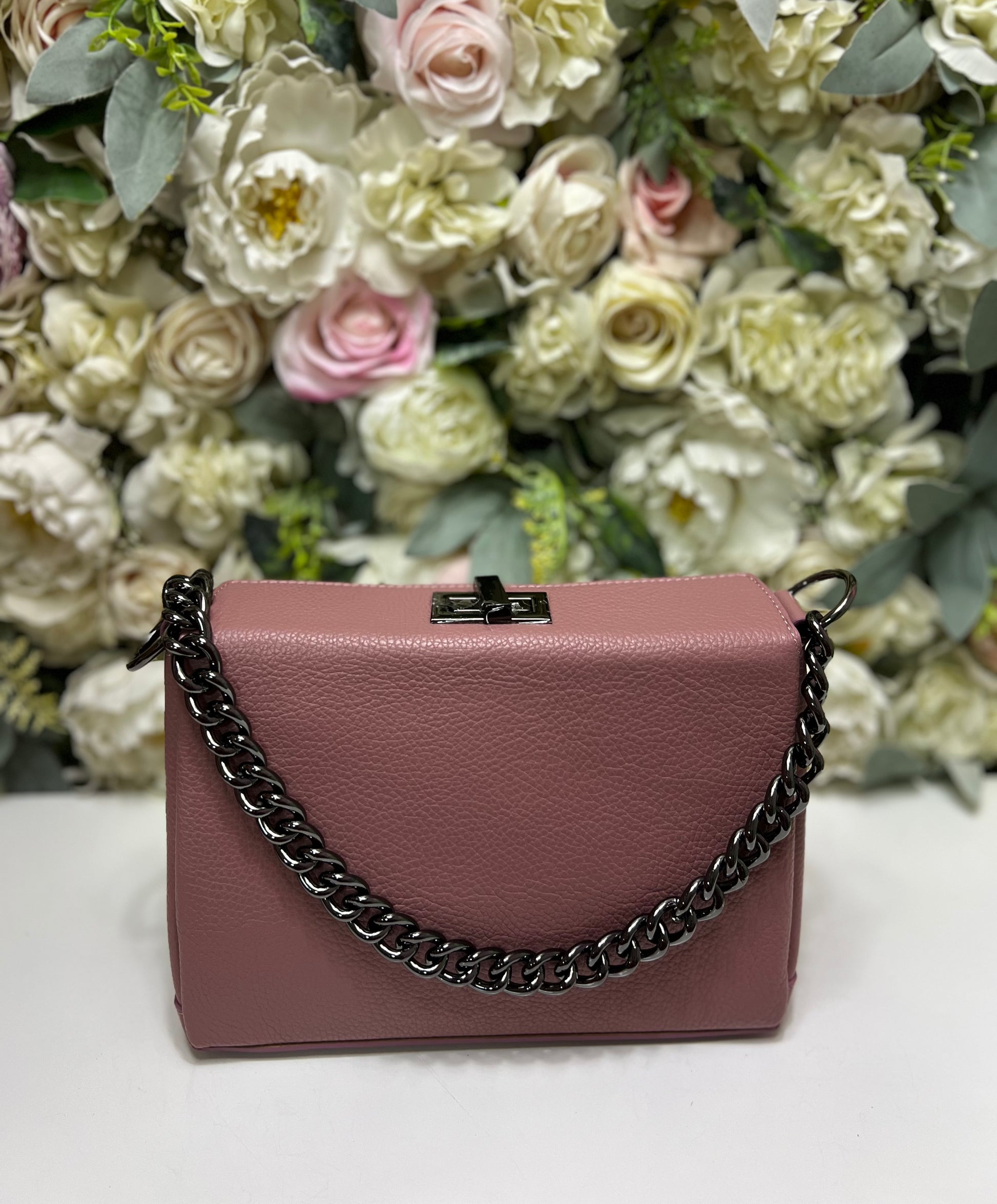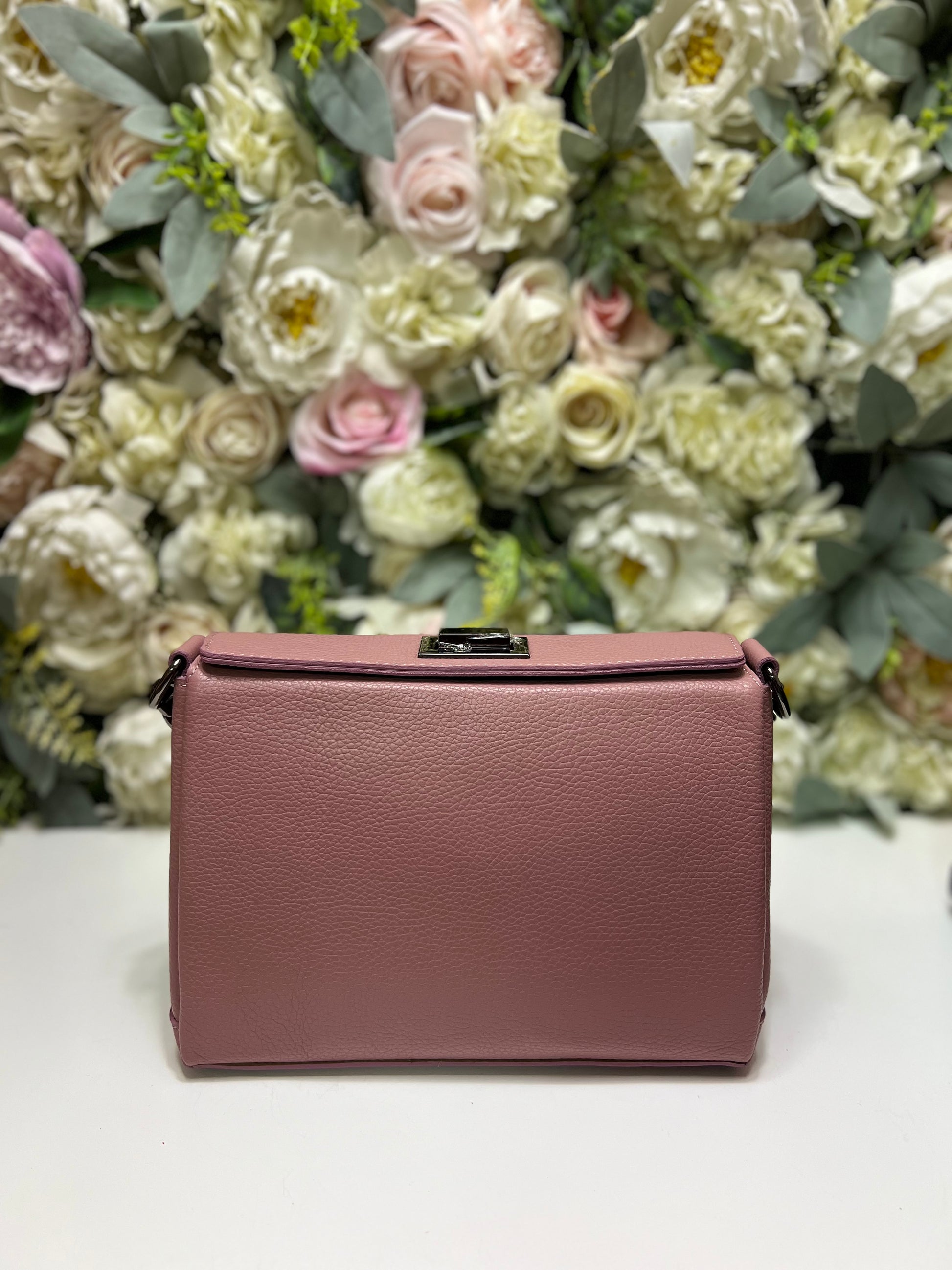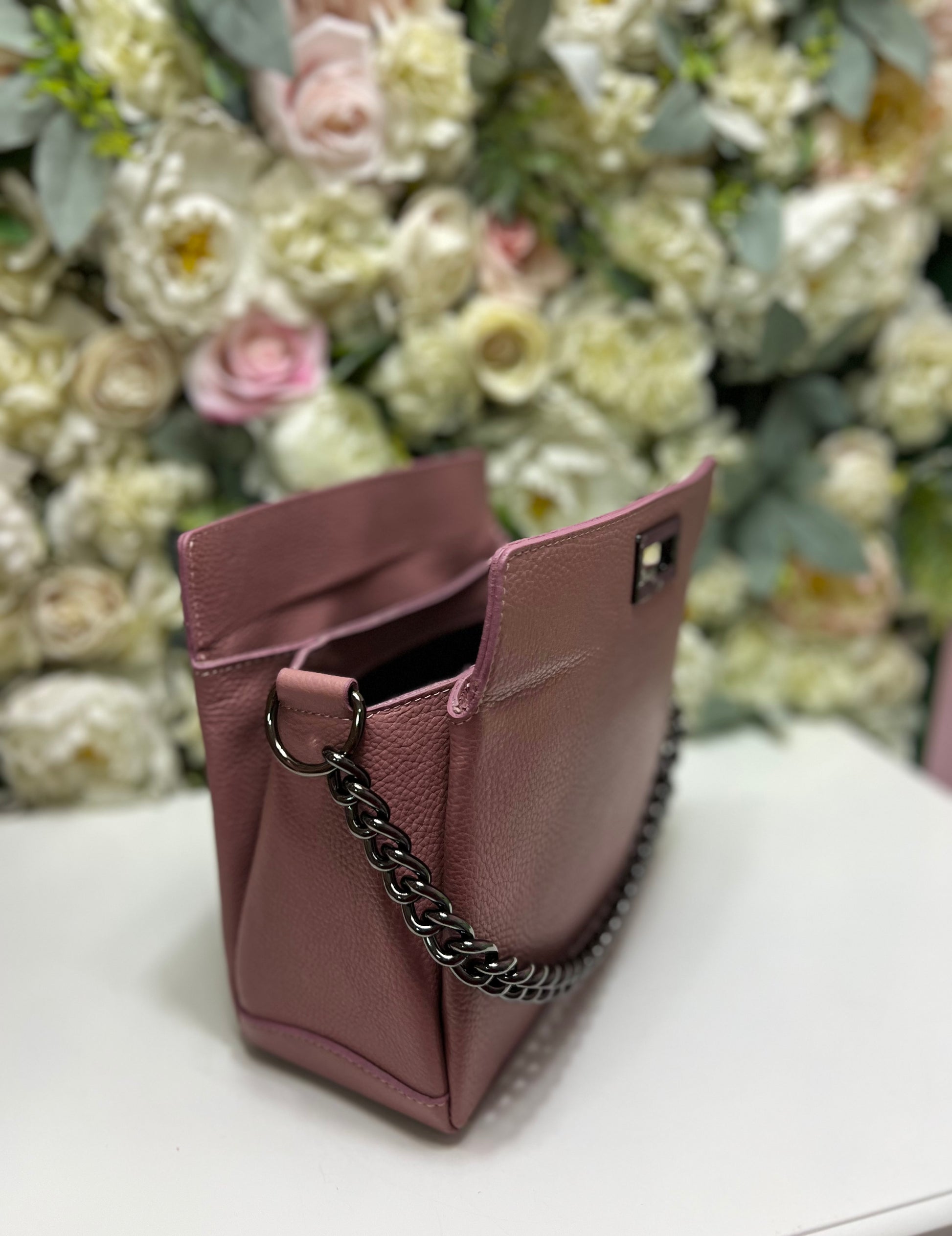 Geanta din piele naturală cu închidere metalică, două barete de mână și baretă de umăr detașabilă. Cele trei compartimente și buzunarul interior îți oferă organizarea perfectă pentru un stil smart casual.