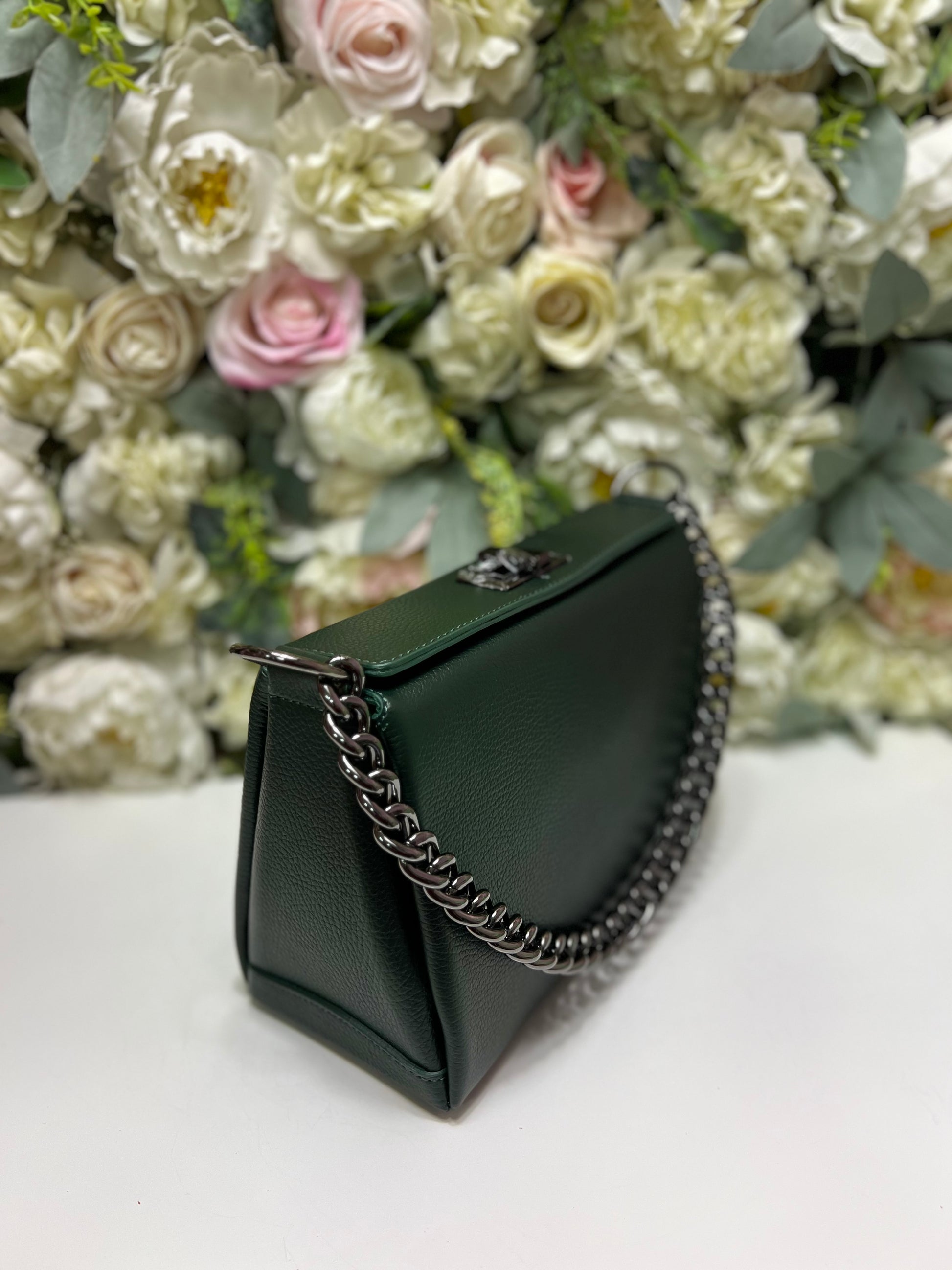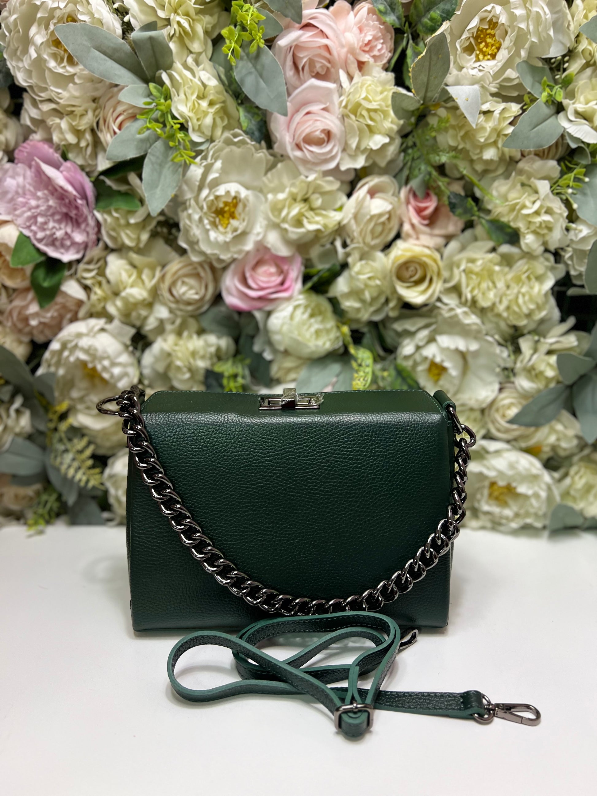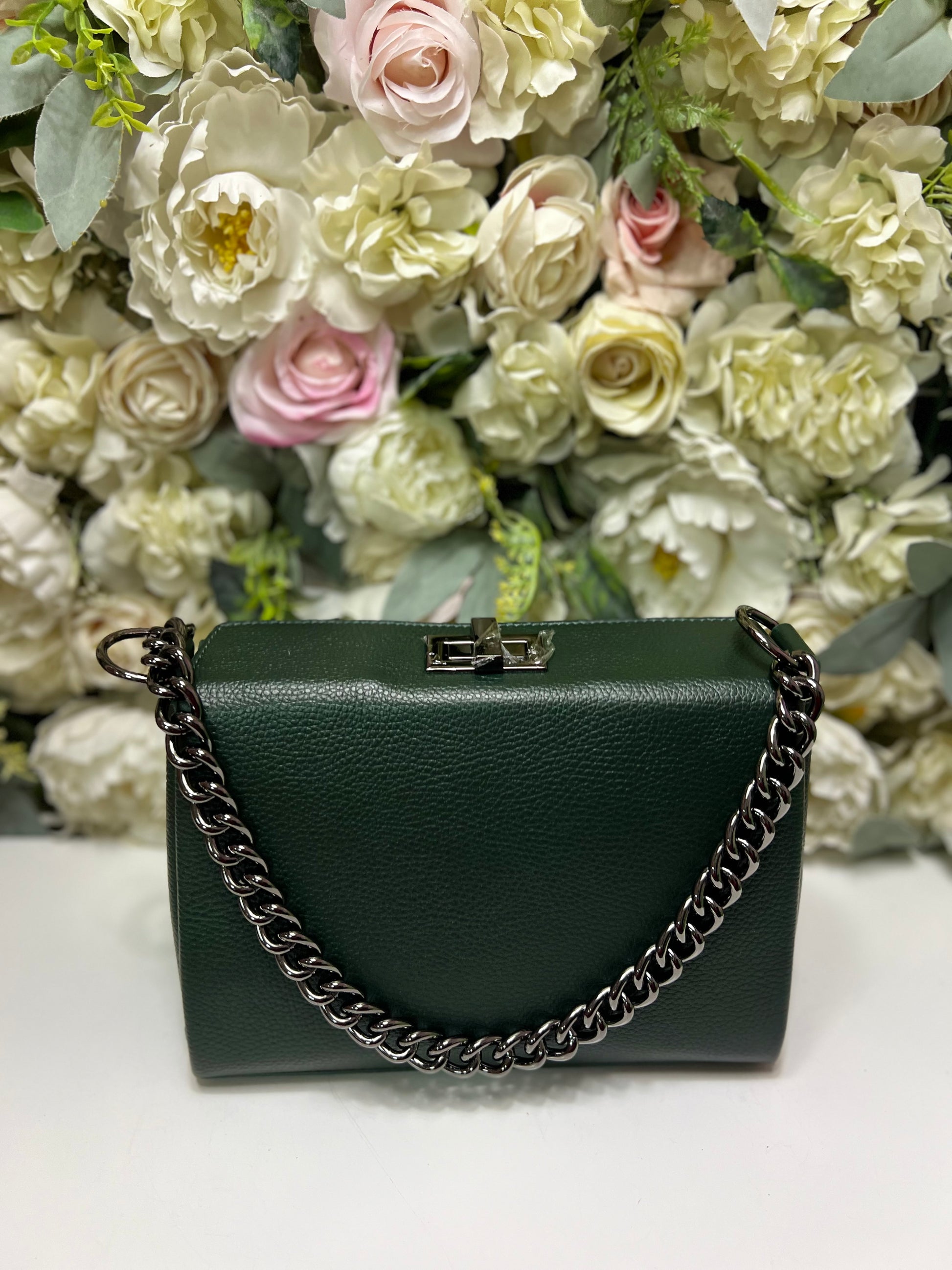 Geanta din piele naturală cu închidere metalică, două barete de mână și baretă de umăr detașabilă. Cele trei compartimente și buzunarul interior îți oferă organizarea perfectă pentru un stil smart casual.