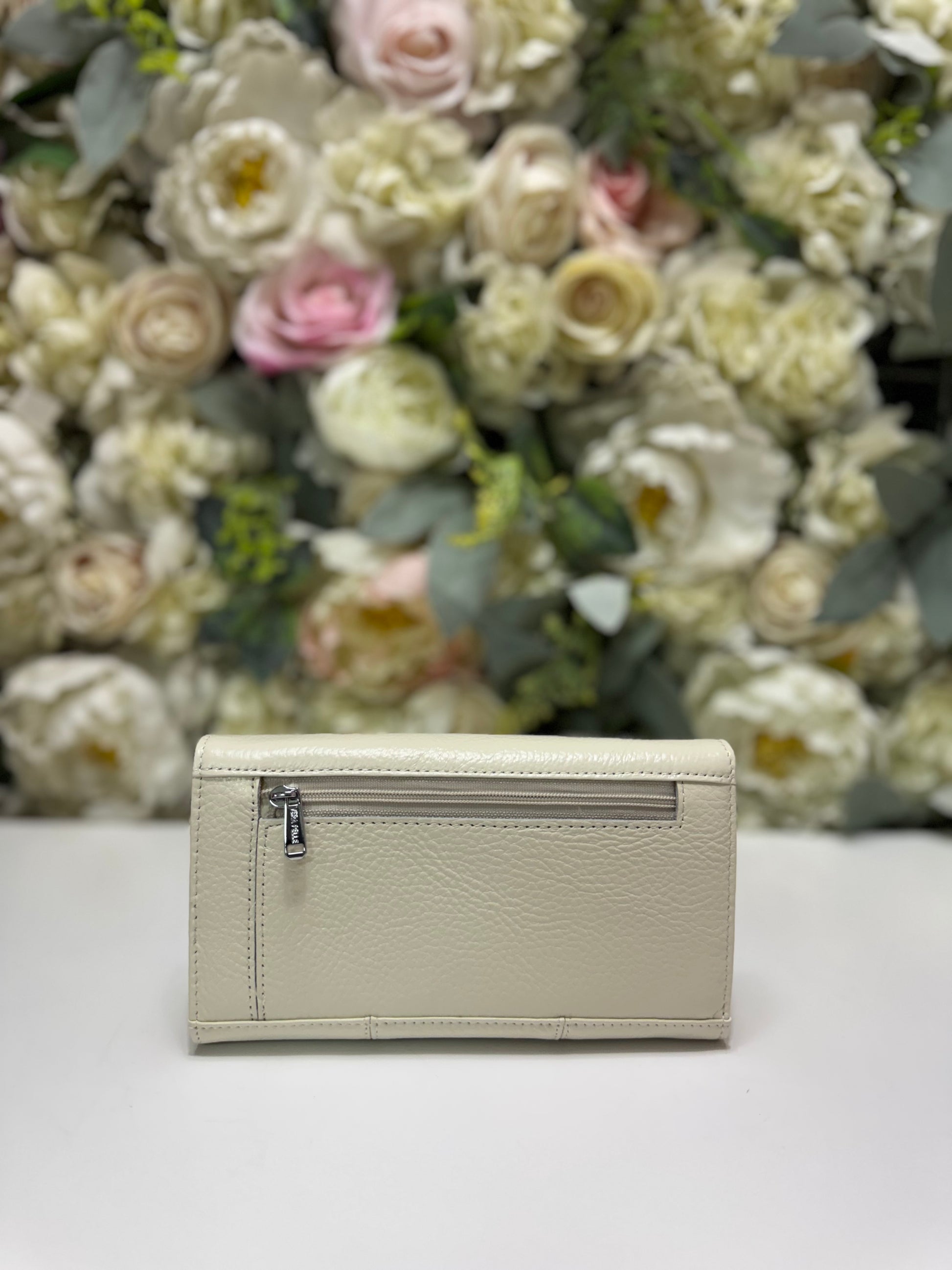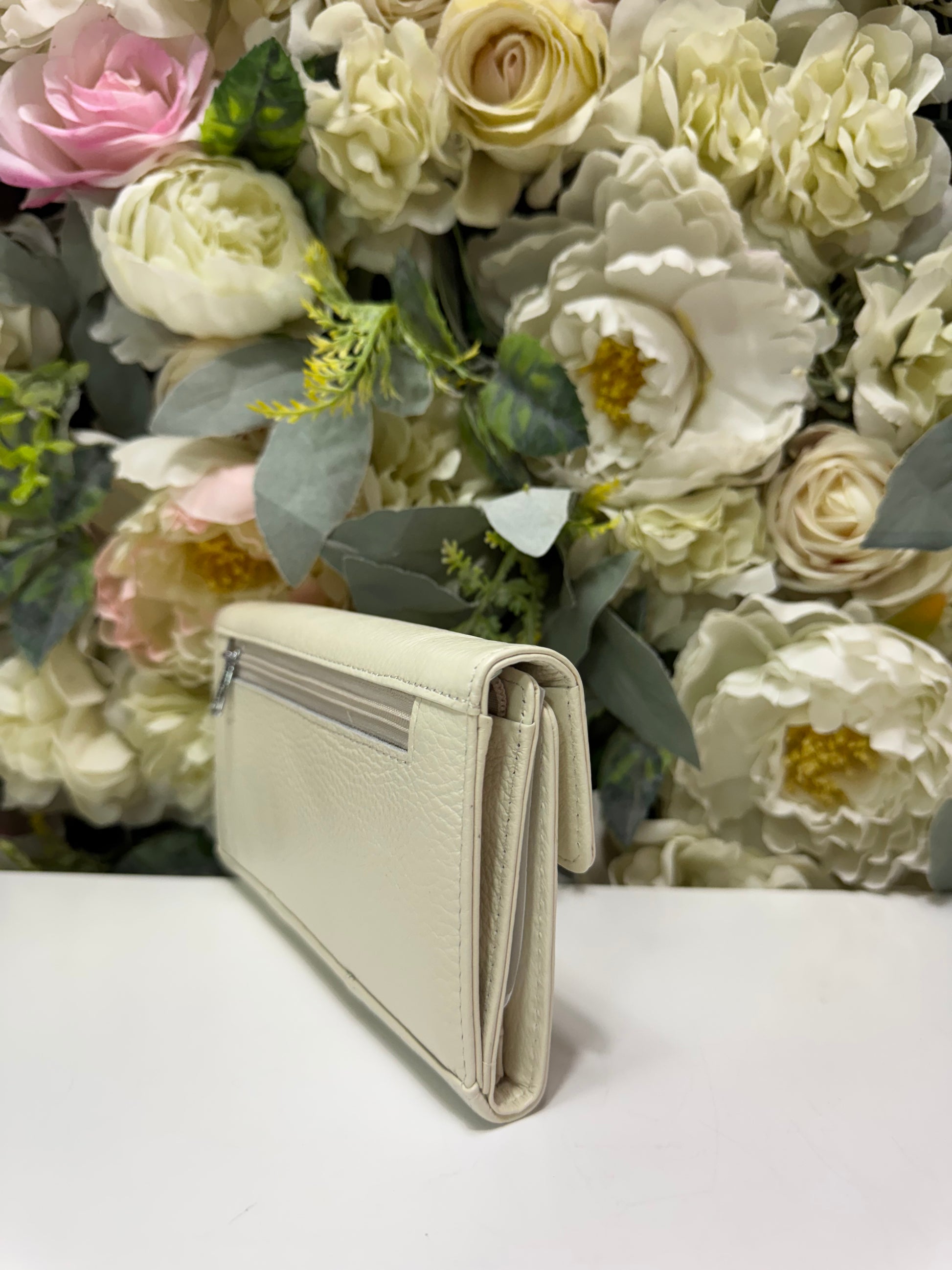 Portofel dama din piele naturala alb