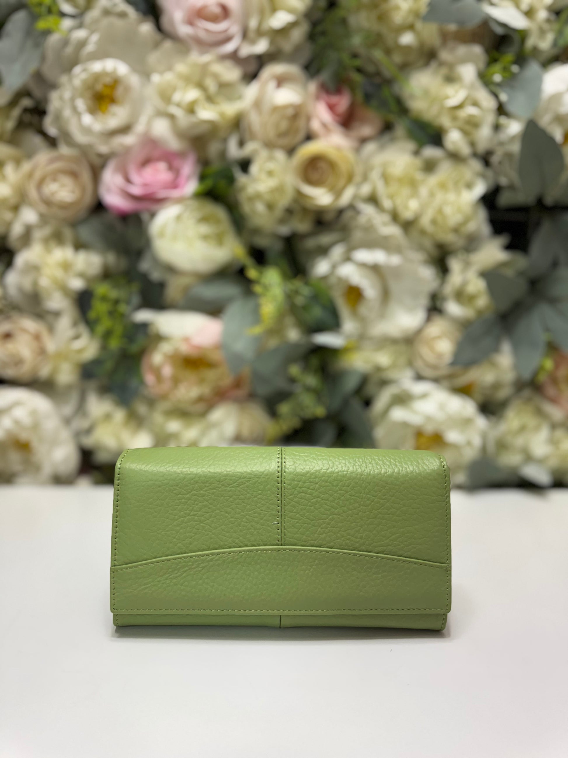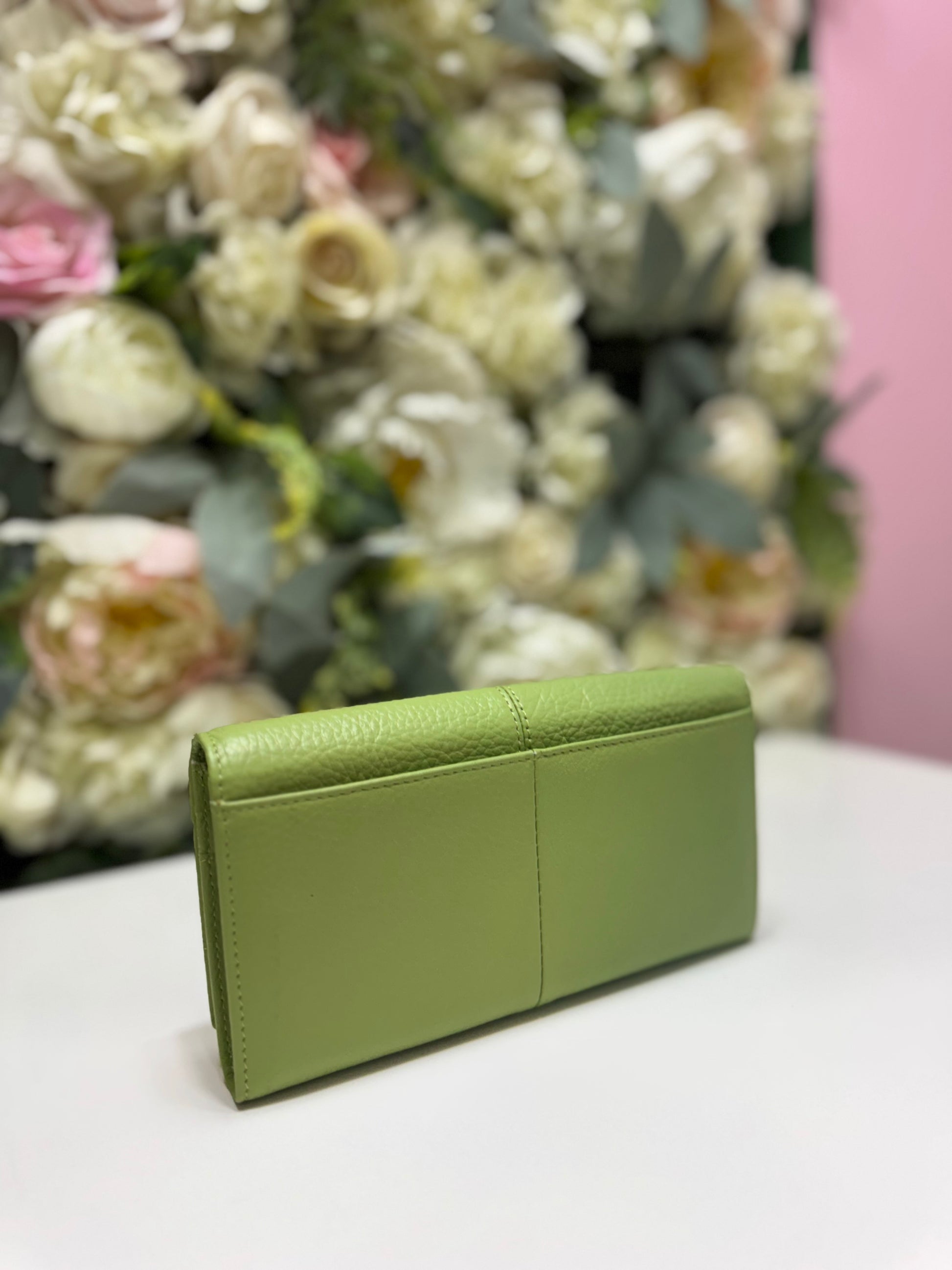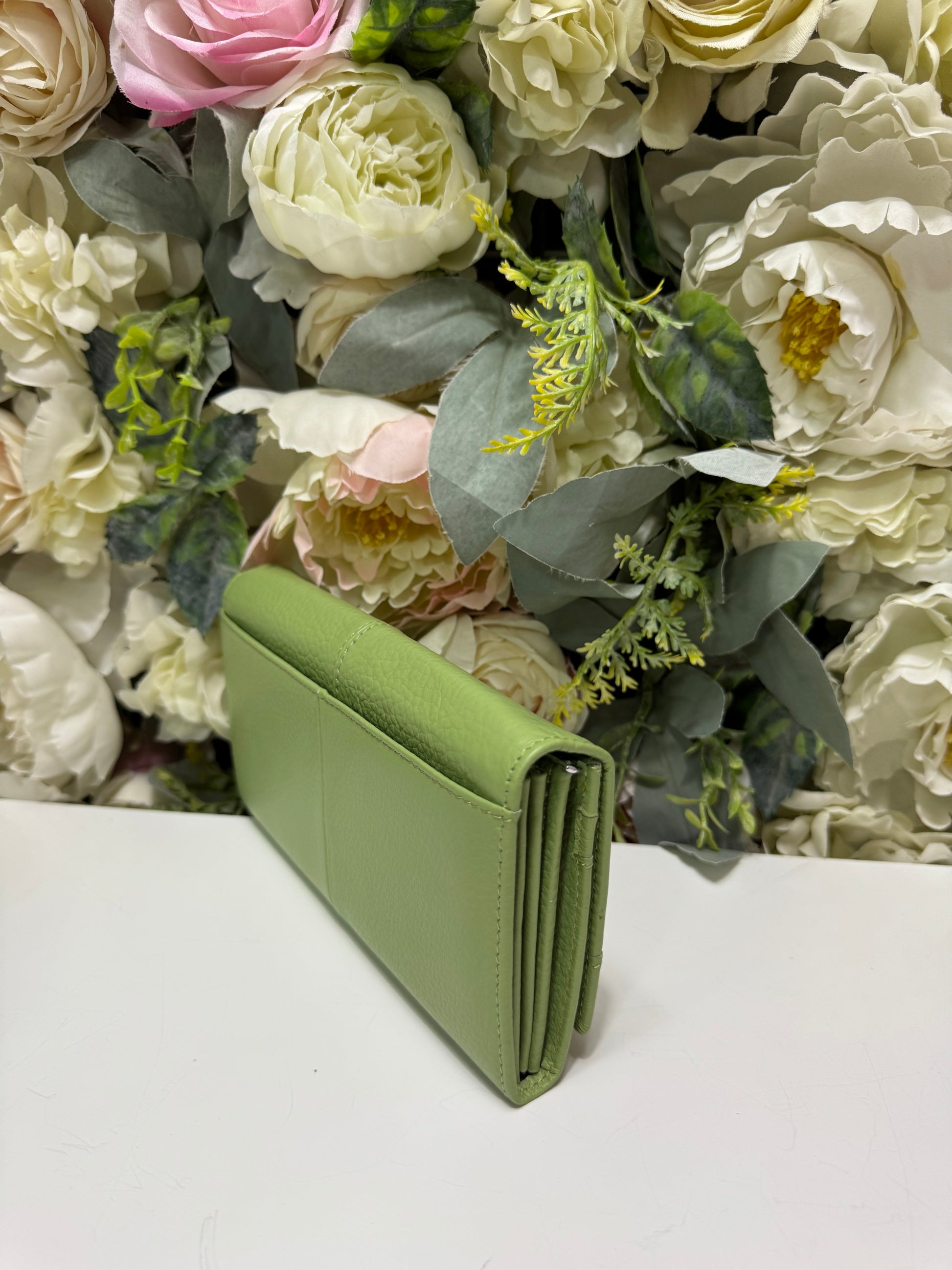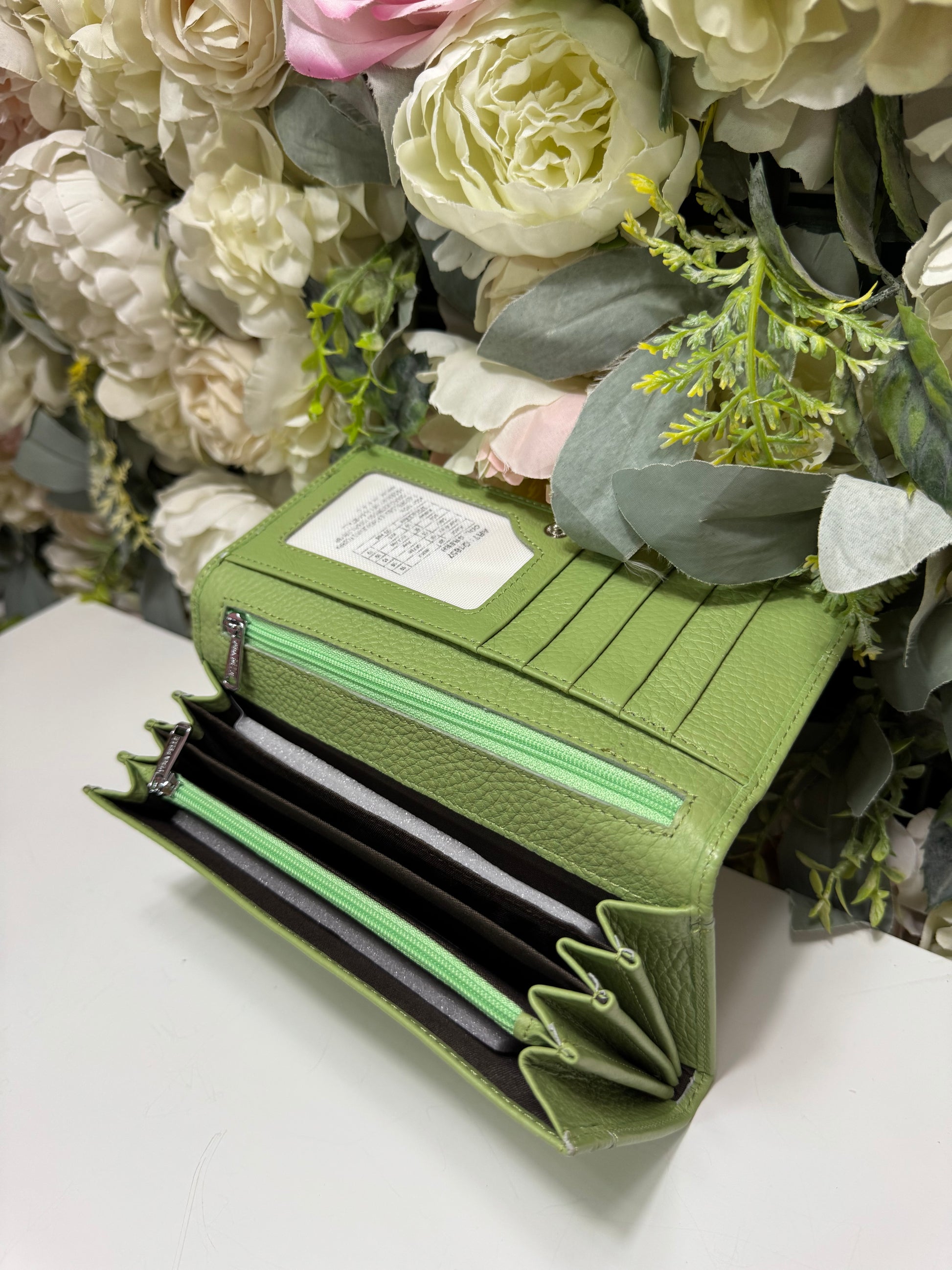 Portofel dama din piele naturala verde fistic