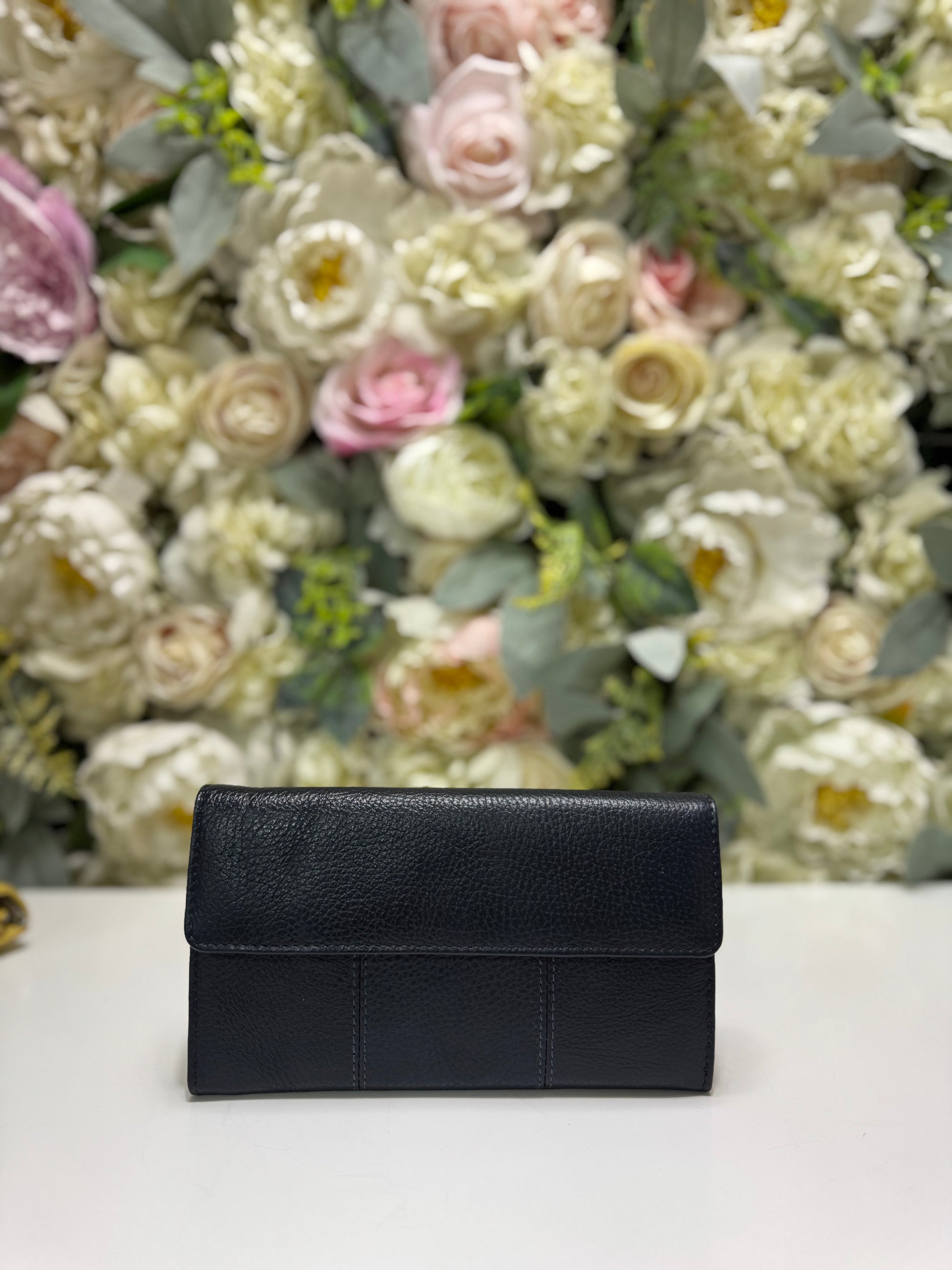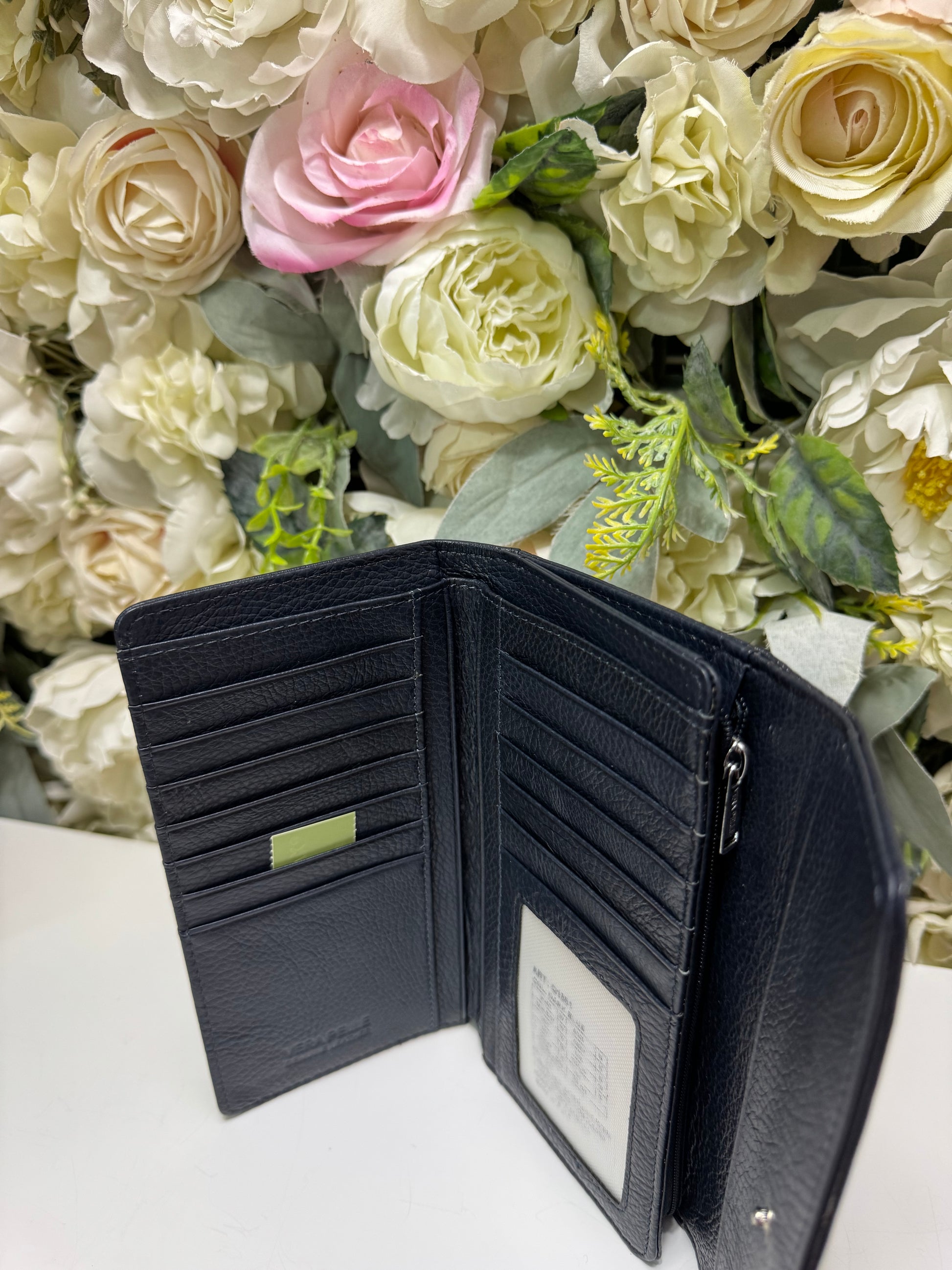 Portofel elegant din piele naturală de înaltă calitate, ce combină rafinamentul cu funcționalitatea. Design compact, cu compartimente bine organizate pentru carduri, bancnote, monede. Un accesoriu practic și stilat, gândit pentru confort.