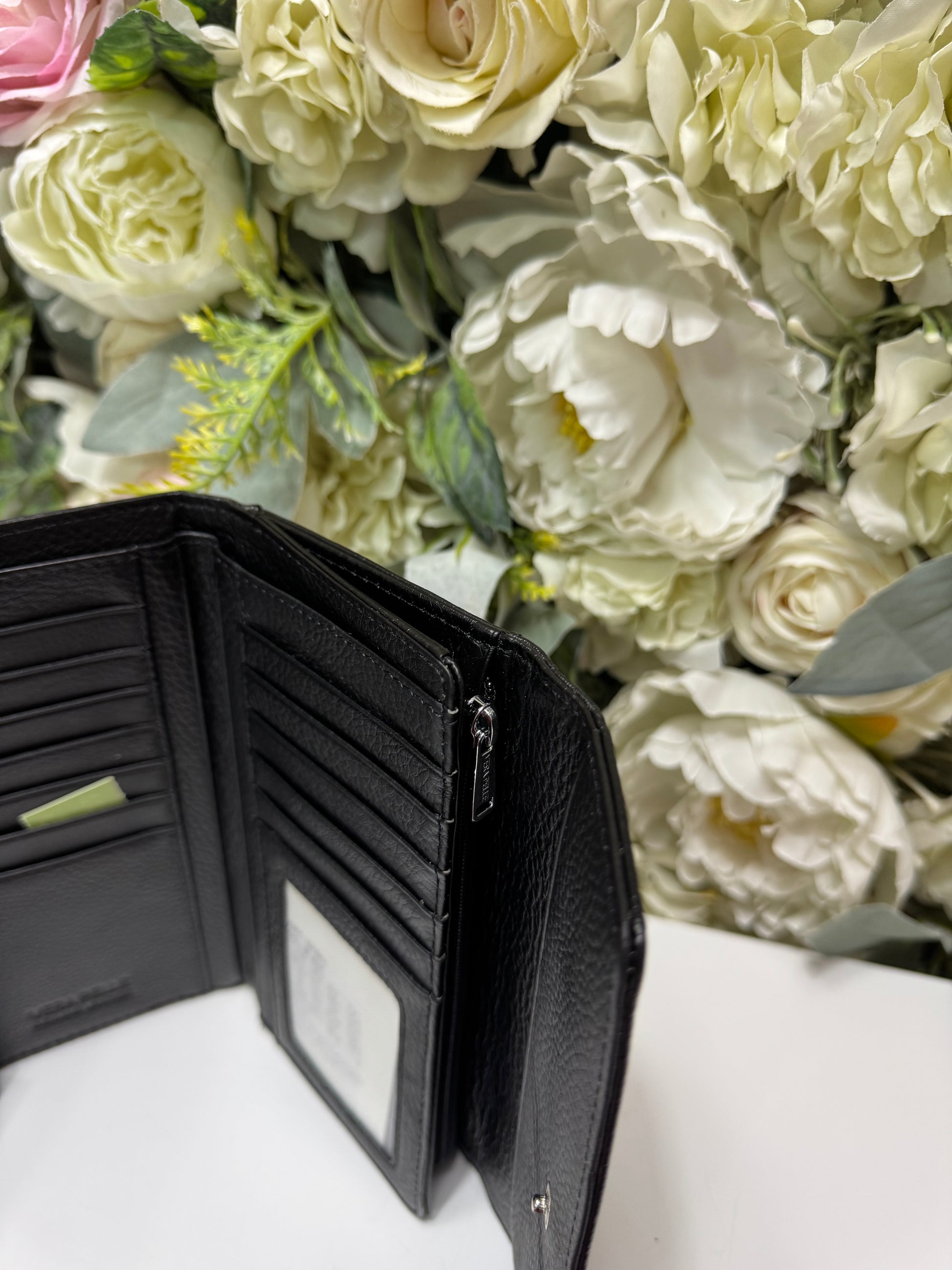 Portofel elegant din piele naturală de înaltă calitate, ce combină rafinamentul cu funcționalitatea. Design compact, cu compartimente bine organizate pentru carduri, bancnote, monede. Un accesoriu practic și stilat, gândit pentru confort.